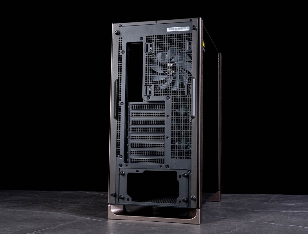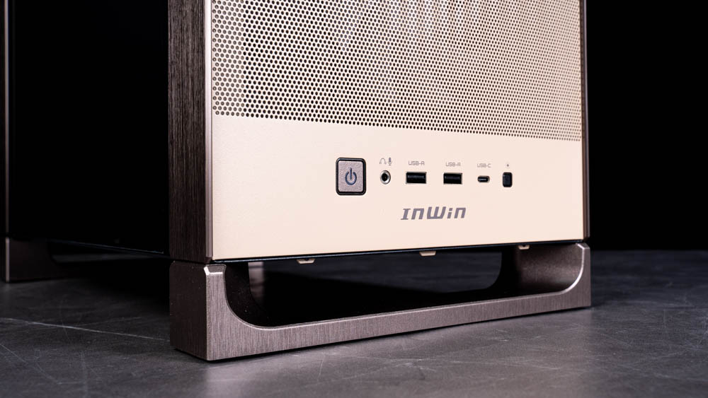 精美機殼登場! InWin DLITE 的摩卡棕配色在外觀設計上相當耐看,機殼前後飾板皆採用髮絲紋鋁質飾條設計,搭配燻黑玻璃側板,營造出層次分明的視覺效果。整體細節表現到位,屬於那種越看越順眼、也越看越有質感的類型。