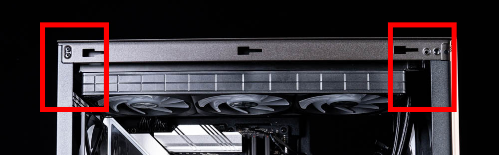 ↑ 主機板安裝位旁風扇鎖位,可鎖三顆120 mm風扇。