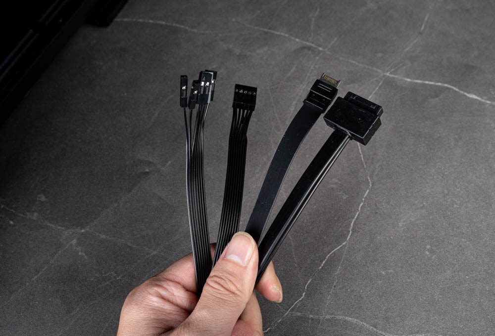 在內部線材配置方面, P30 ARGB 採用標準化排線設計,包含主機板前置 USB 3.0、USB Type-C、HD Audio 以及前面板控制線組,線材皆為扁平線材,長度配置充足,可應付一般 ATX 平台的走線需求。