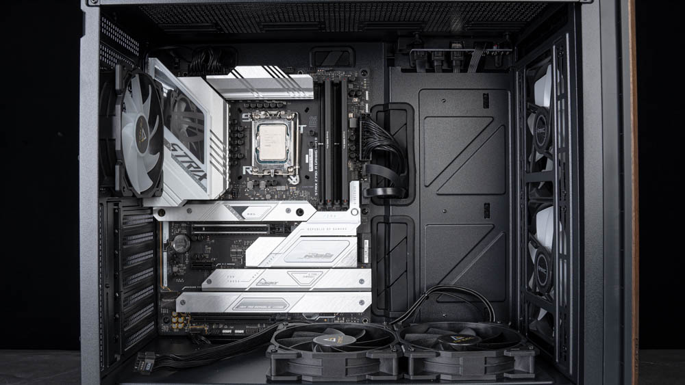 最後補上一組理線參考,由於左側設有理線束帶,即使線材集中於左側,電源艙空間仍相當寬敞,可將多餘長度的線材一併收納於其中,維持整體走線的整潔度。