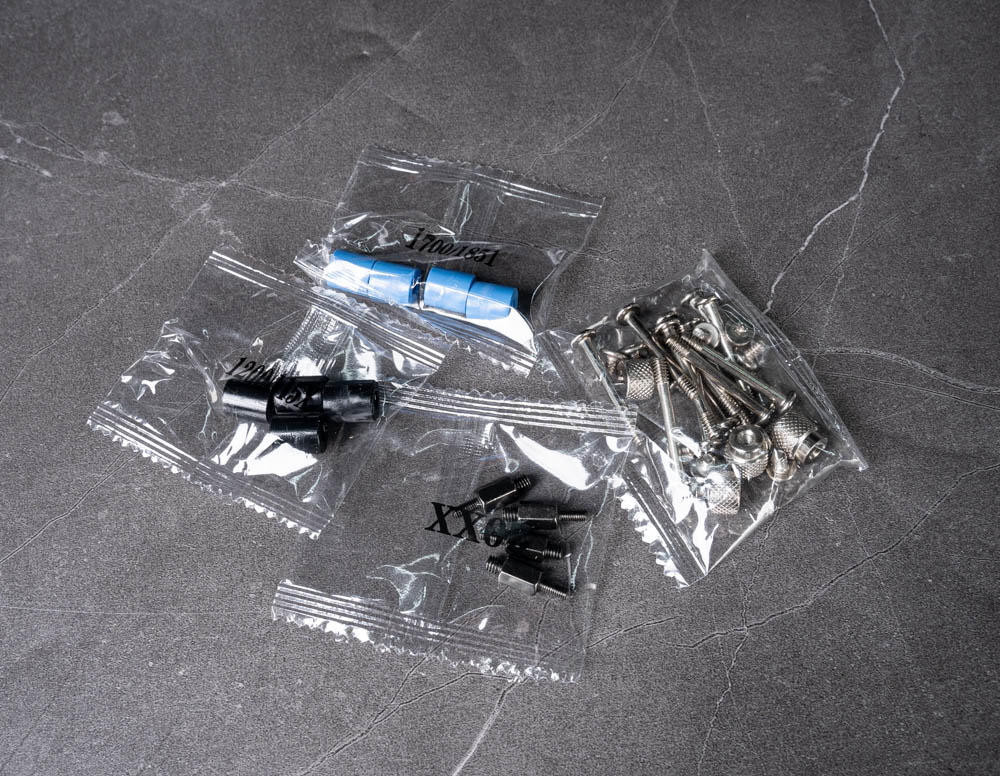 ↑ 螺絲、間隔柱零件包,都有標示對應的平台。