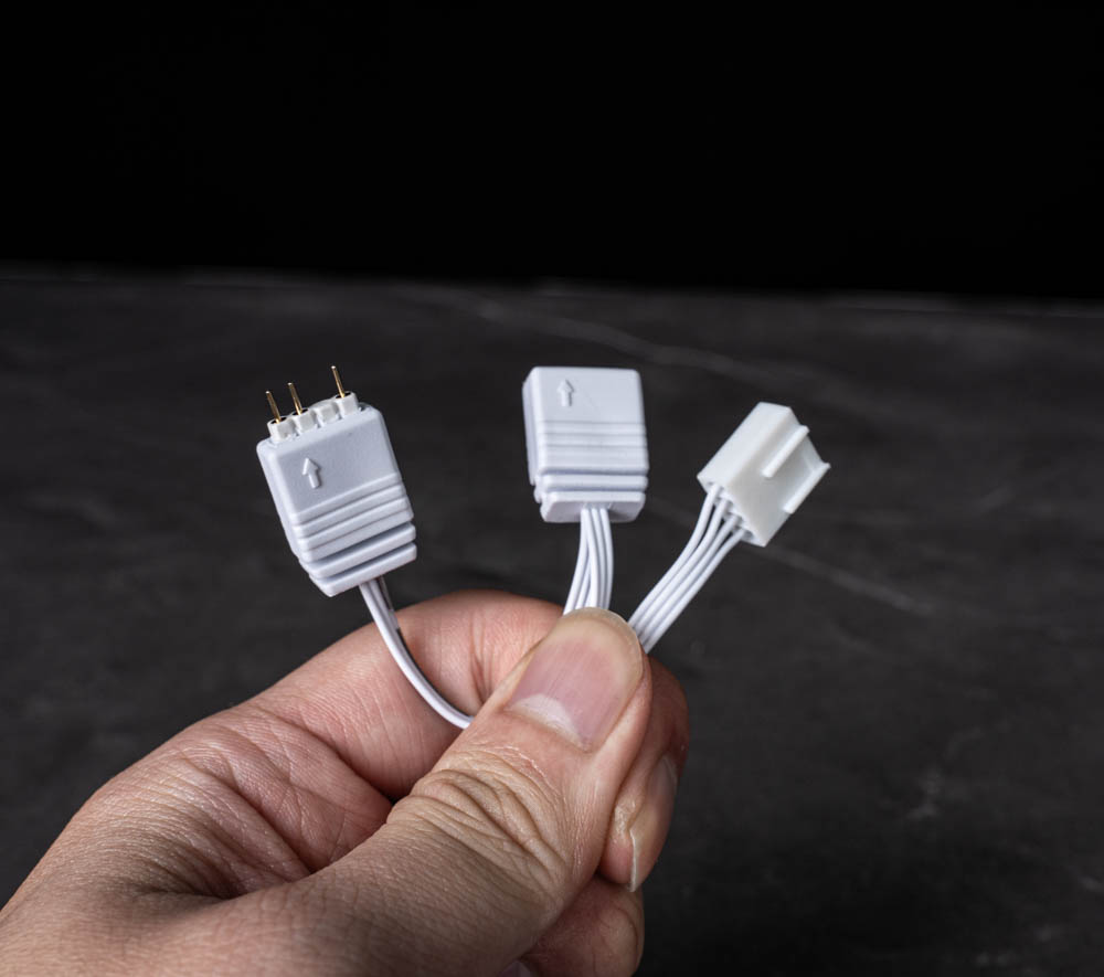 ↑ 水冷頭連接線材,水泵4pin PWM、燈效 3pin ARGB公母接頭。