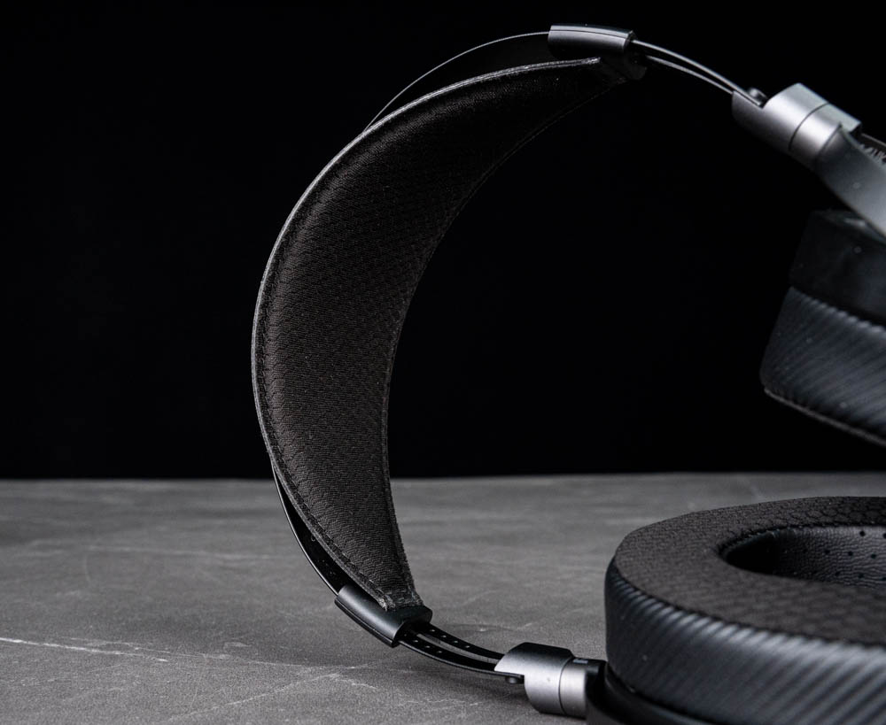 頭帶面向使用者的一側為透氣布材質,內部填充提供柔軟支撐,背面則以皮質包覆,兼顧質感與結構強度。搭配約 420g 的整體重量與適當的接觸面積,實際配戴時壓力能有效分散,長時間使用也不易產生明顯壓迫感。