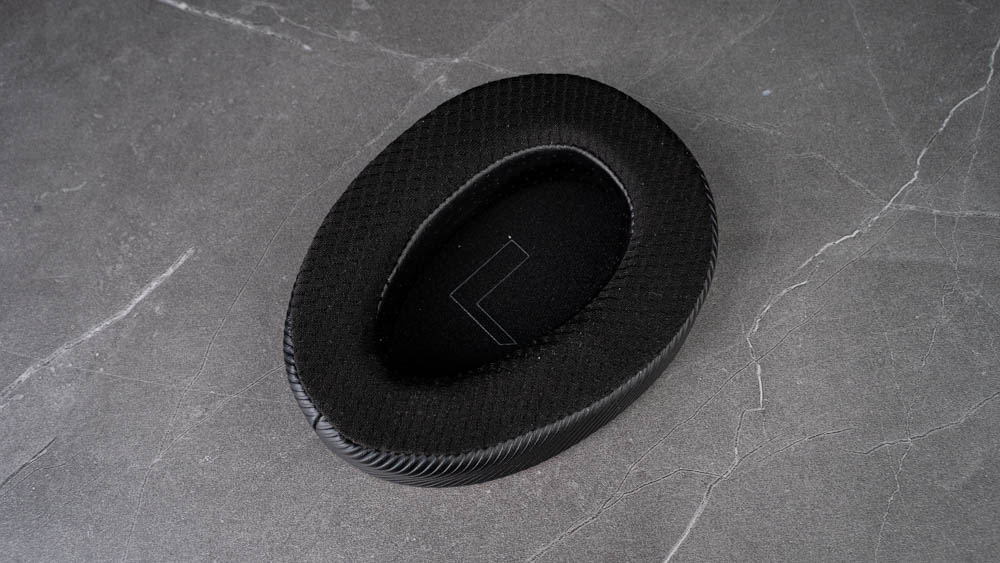 ROG Kithara 提供兩種不同材質的耳罩,分別為預裝的透氣布面搭配側邊皮質耳罩,以及額外附贈的天鵝絨材質耳罩。兩者在配戴感與聲音表現上皆有明顯差異。