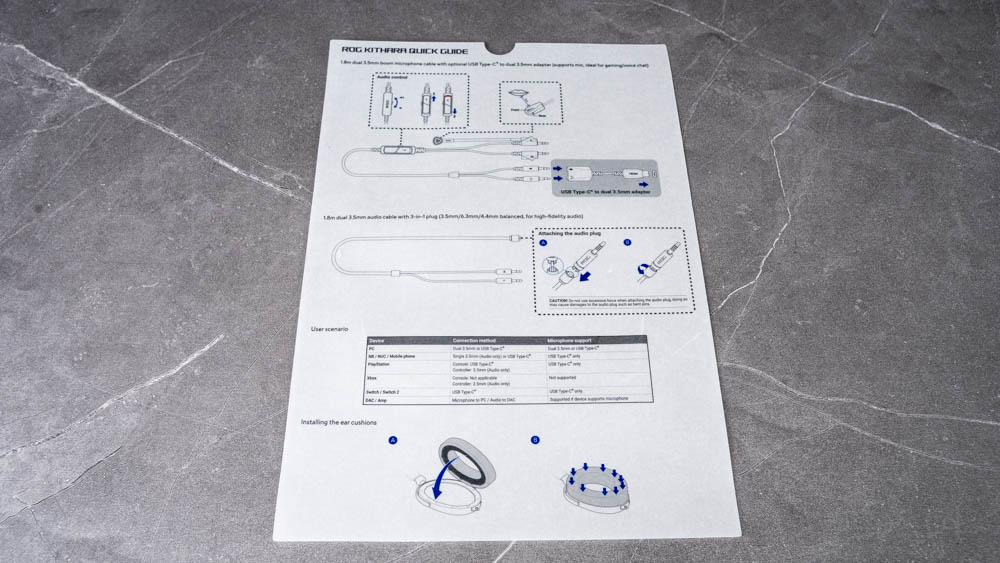 ROG Kithara 開箱 / 單端接頭、TYPE-C轉接線、可替換式耳罩