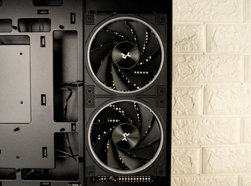 ↑ 主機板安裝區右側預裝兩顆 ARGB風扇。