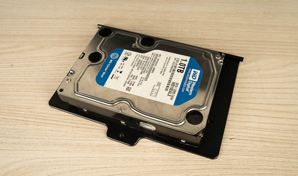 ↑ 一顆 3.5 吋 HDD硬碟安裝。