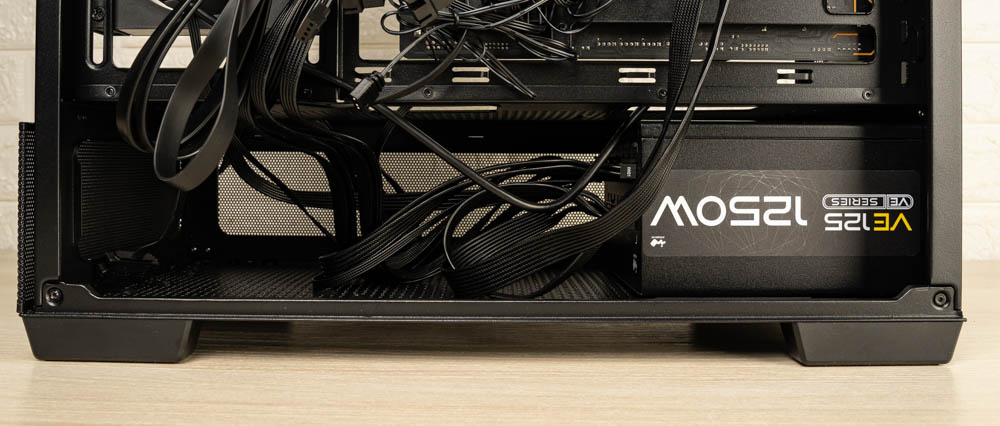 此外,下方電源艙與硬碟架之間也預留了足夠空間,可收納多餘的線材,即使使用全模組電源,整組未使用的線材也能順利塞入,不會影響側板闔上。