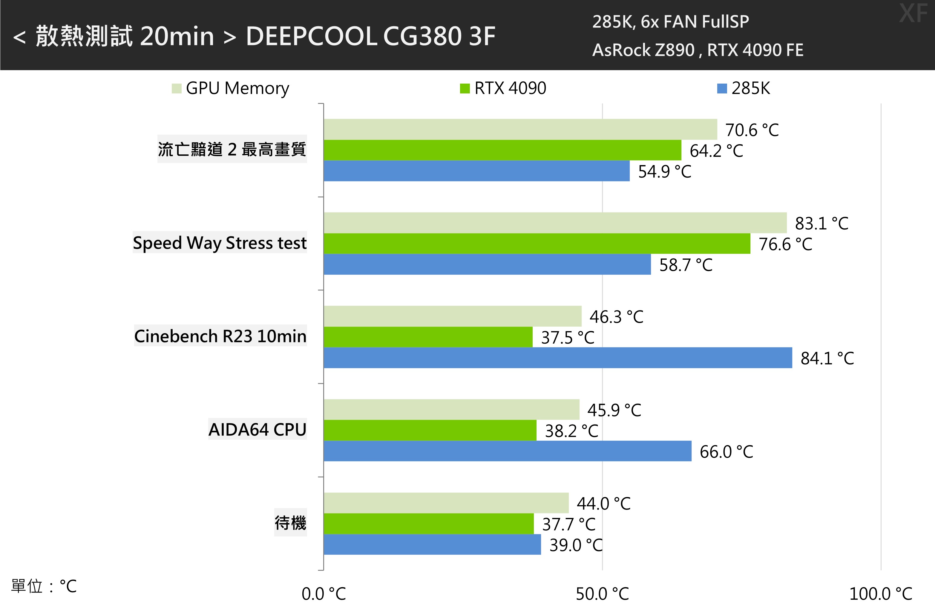 測試使用了 Intel Ultra Core 285K處理器搭配AsRock z890主機板,顯示卡則是公版的 RTX 4090,在Windows 11的環境下測試,處理器使用預設設定並將風扇調為全速,並使用HWiNFO紀錄二十分鐘的平均溫度。