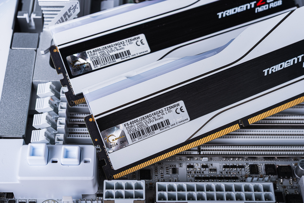 記憶體則是 G.SKILL Trident Z5 Neo RGB,規格為 16GBx2 DDR5-6000 CL28-36-36-91 1.4V。測試時也直接套用 AMD EXPO 參數即可。