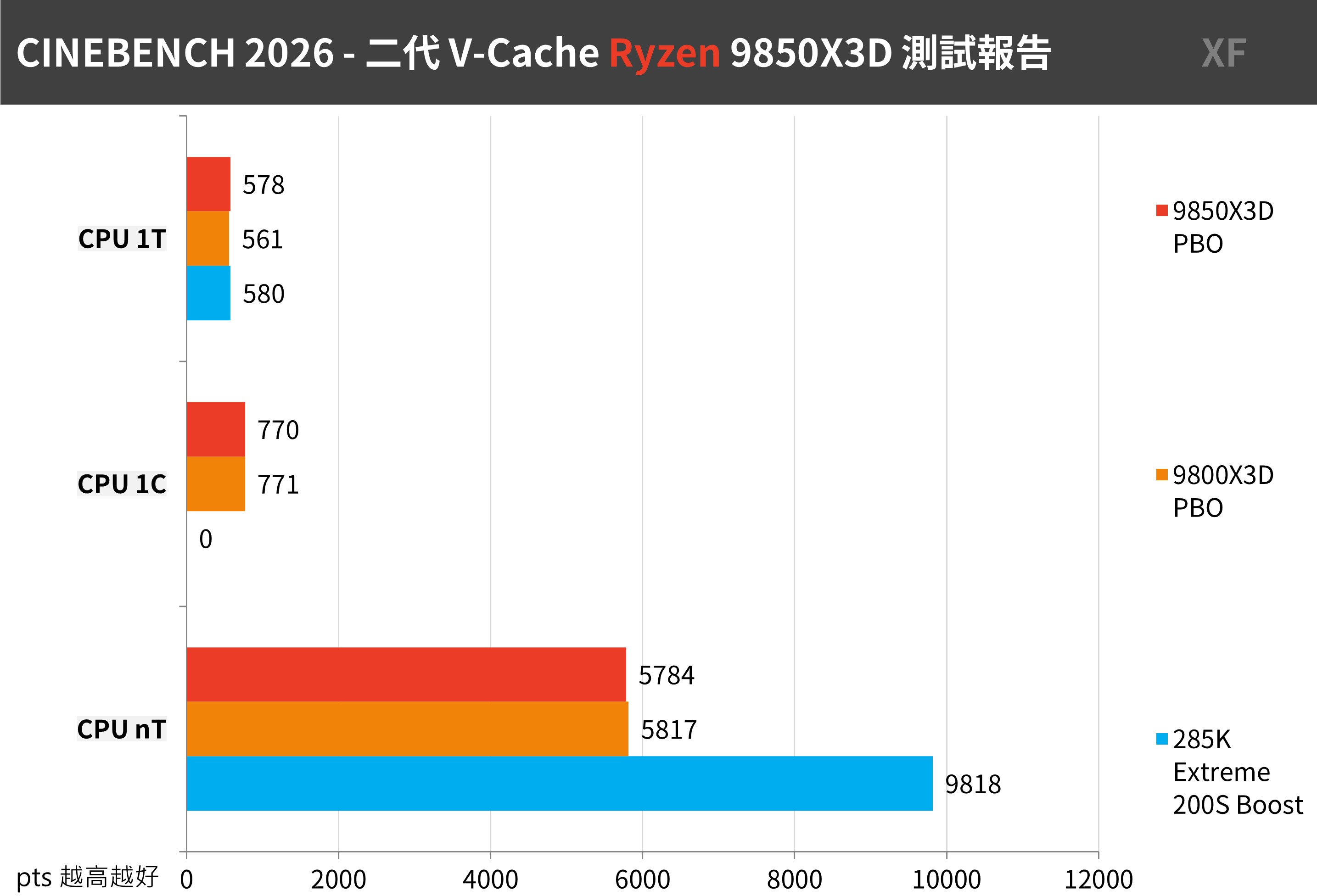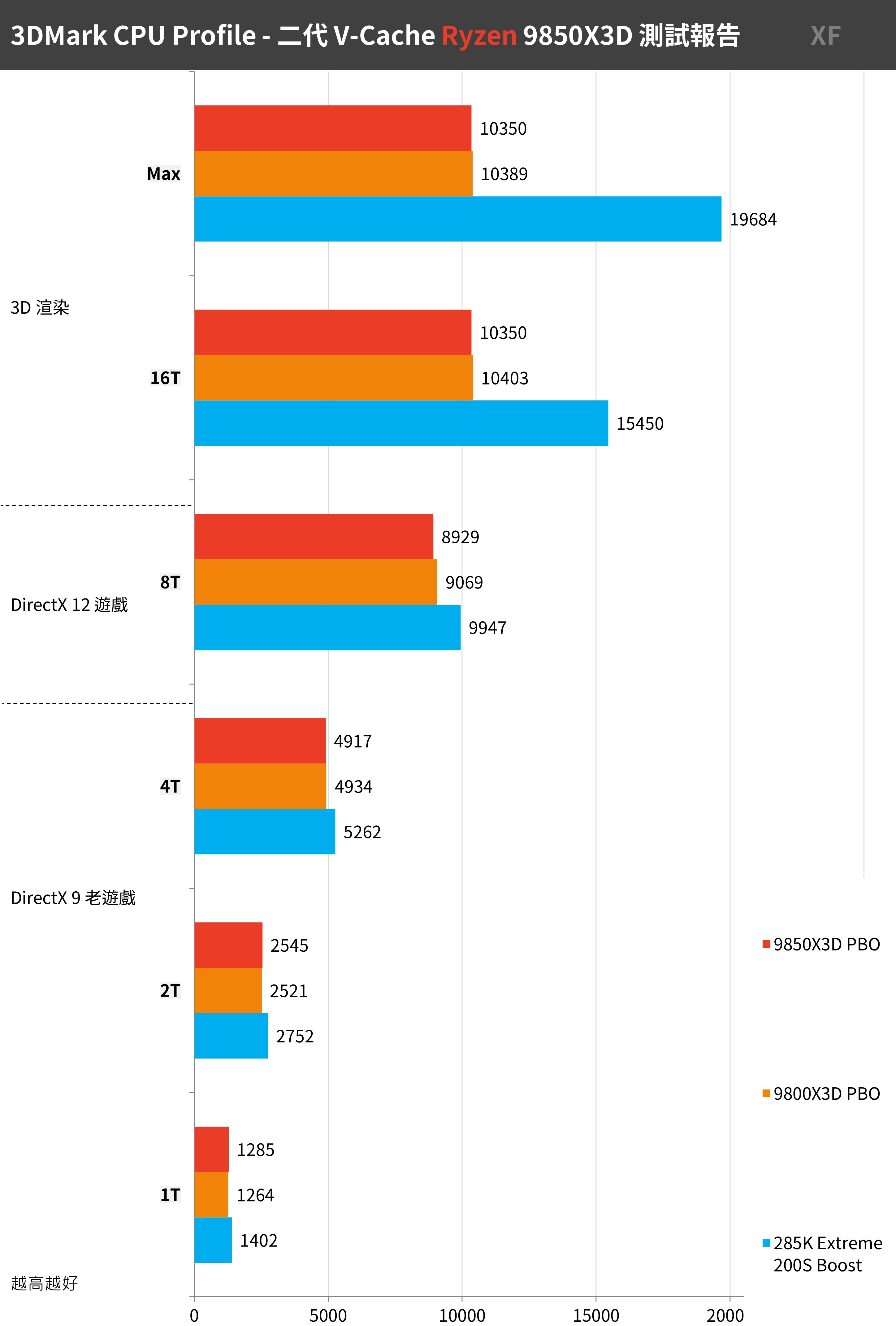 最強遊戲處理器如今不是 9850X3D 就是 9800X3D;當然這成績差異,主要在於 FHD 解析度、GPU 負載未拉滿的情況下,才能藉助 CPU 加大的 L3 快取獲得更高的 FPS 效能輸出。但對於 AMD 來說最強遊戲處理器就是最強!