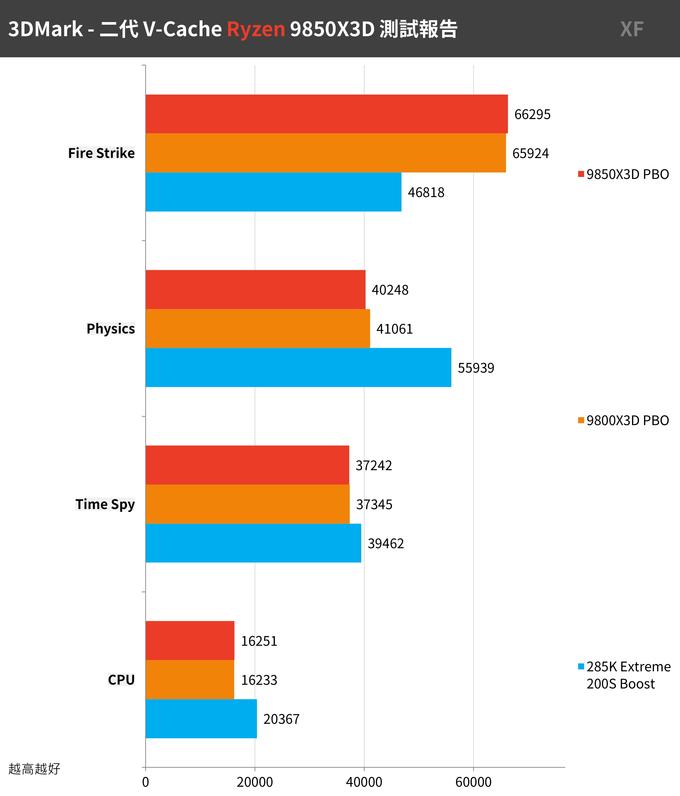 Fire Strike Physics 成績 9850X3D 40248 分、Time Spy CPU 成績 16251 分,性能與 9800X3D 差異不大。