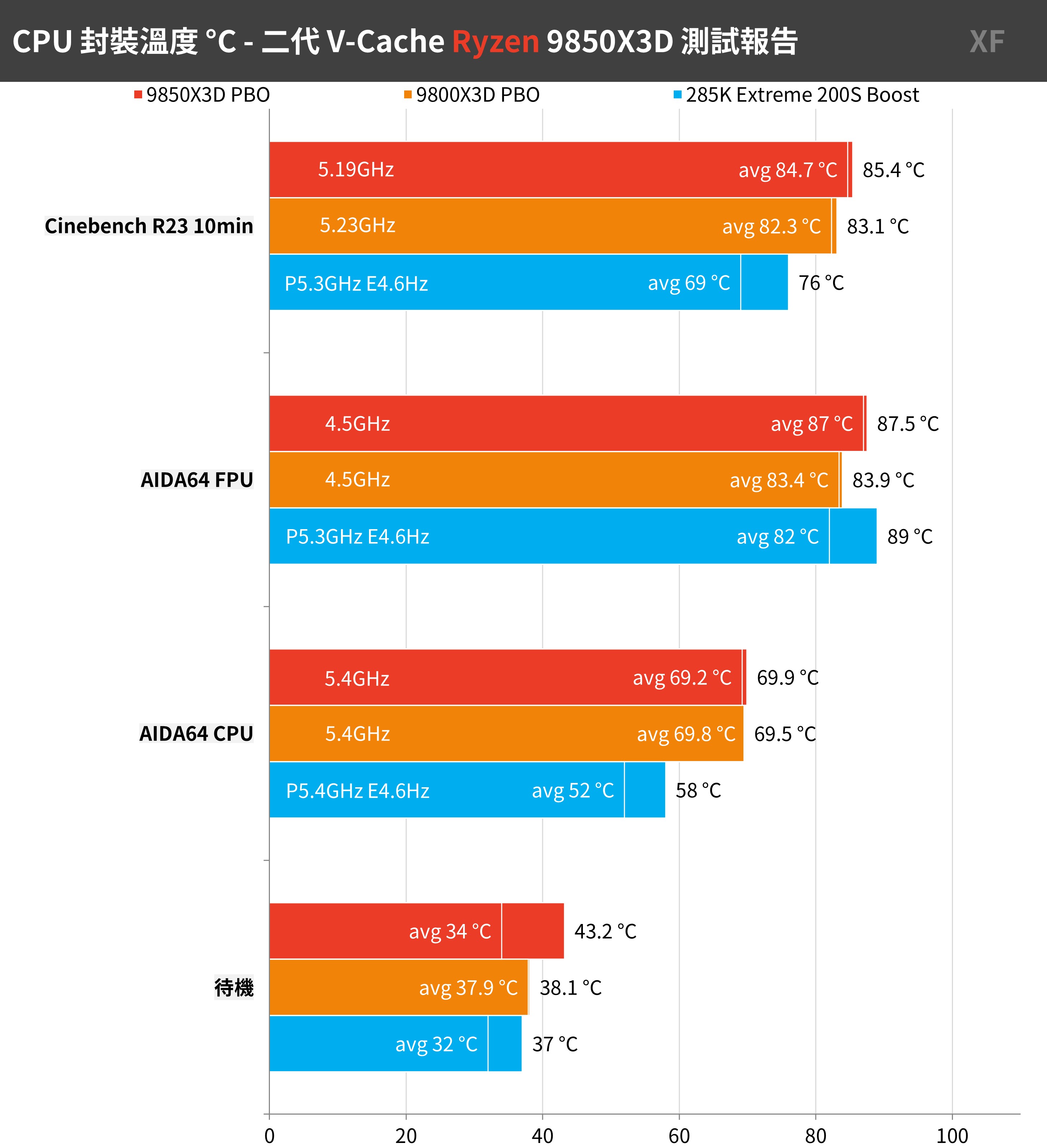 9850X3D 與 9800X3D 同樣都開啟 PBO 200MHz 超頻,因此這溫度差距屬於合理範圍。