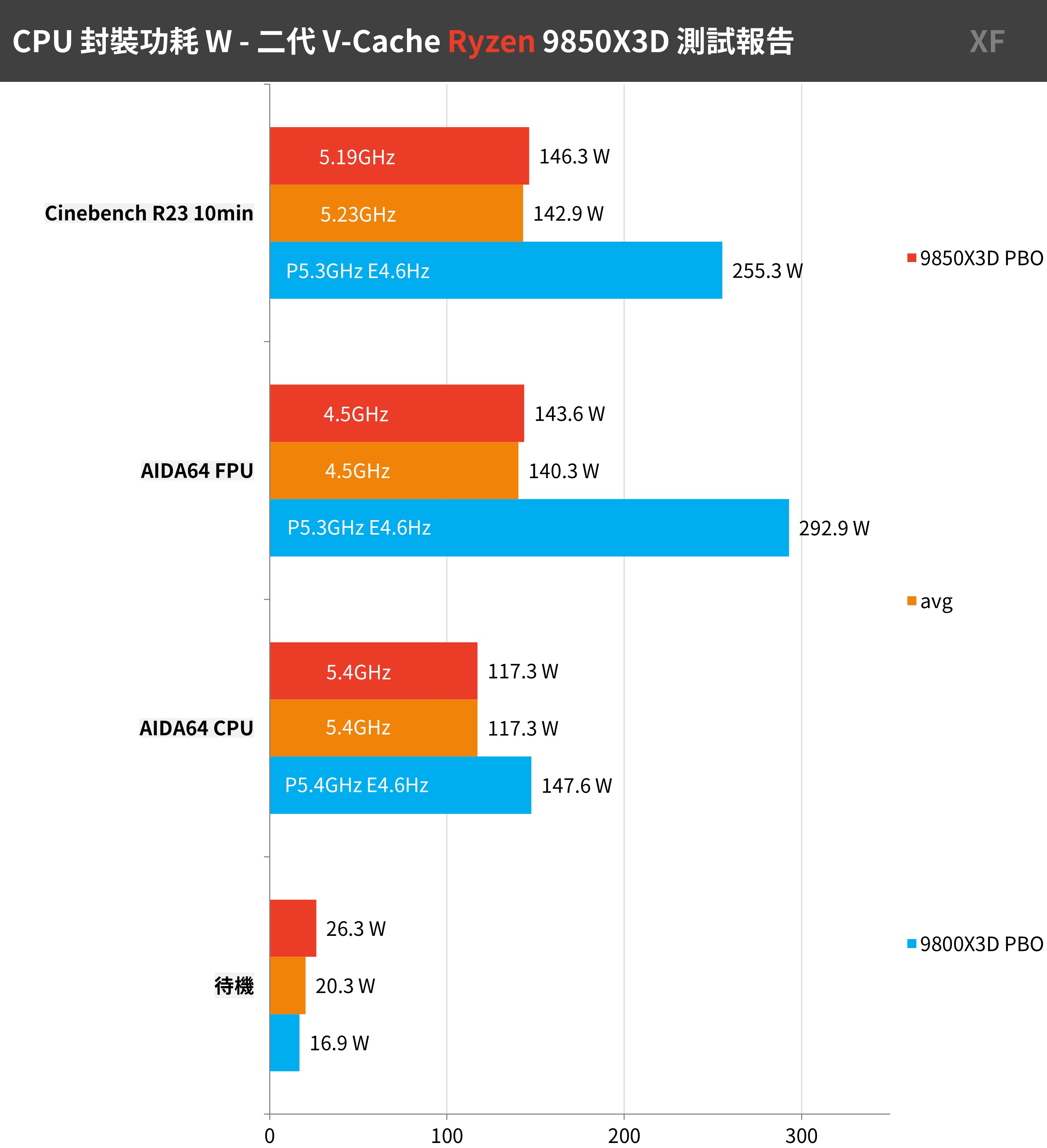 CPU Package Power 功耗方面,9850X3D 與 9800X3D 都達到最高 140W 以上的功耗,也符合開啟 PBO 的設定,整體表現符合預期。