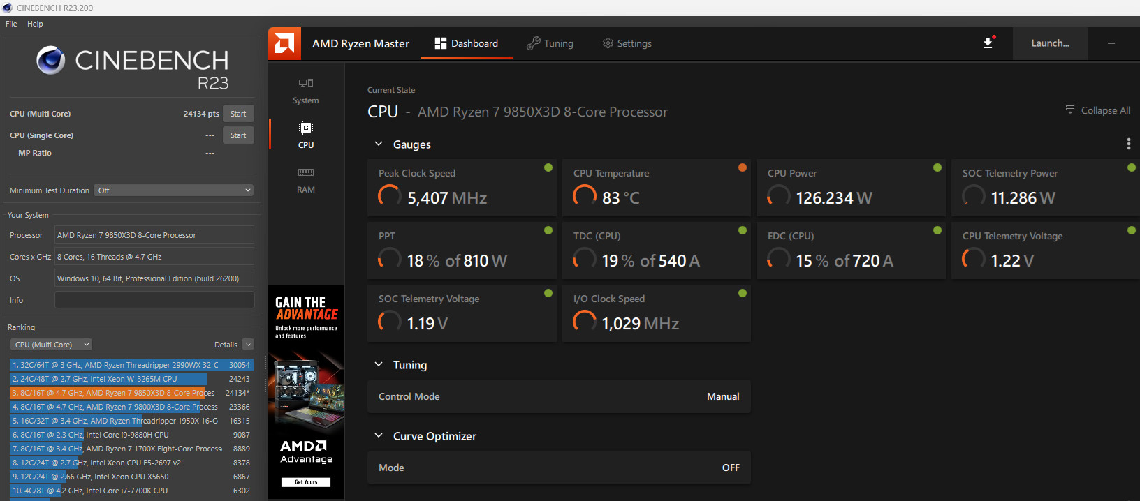 處理器:AMD Ryzen 9850X3D、9800X3D,設定 PBO +200MHz