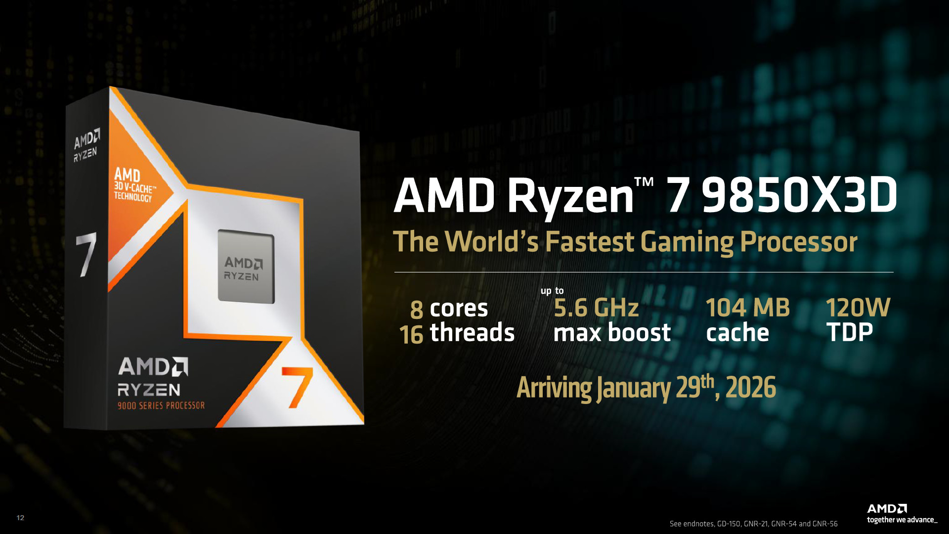 ↑ AMD Ryzen 7 9850X3D 將於 1/29 日正式推出。