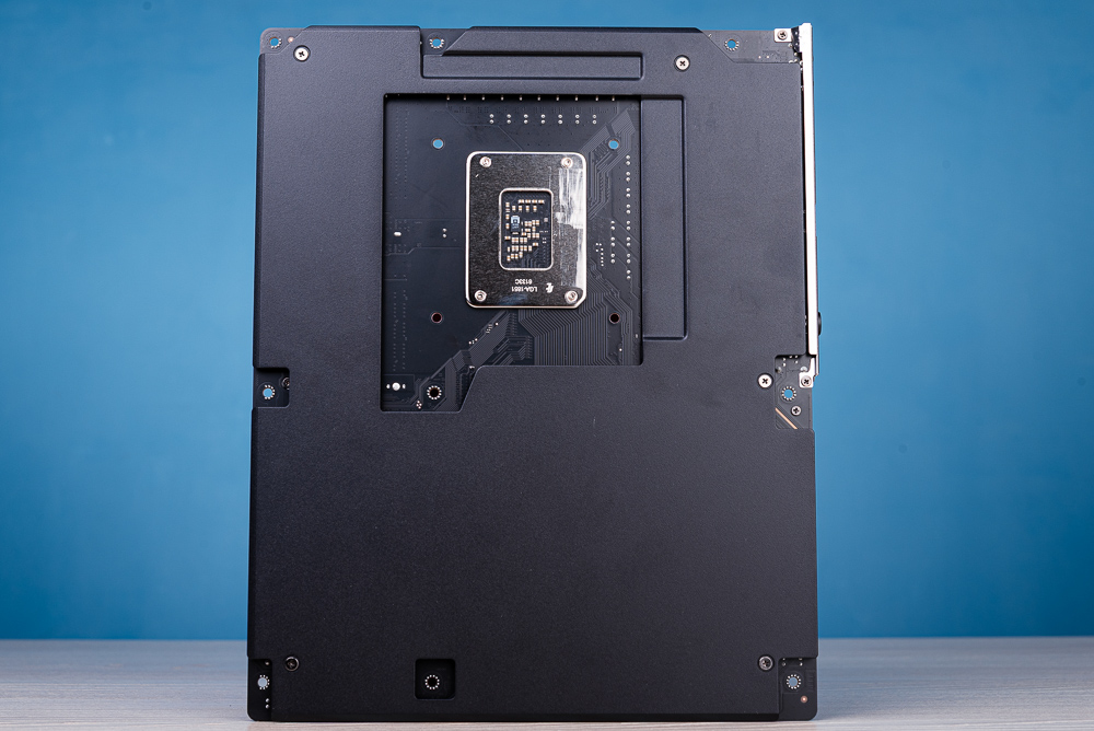 ↑ 全包覆金屬背板強化主板,不被針腳刮傷,更替 VRM 背面解熱。