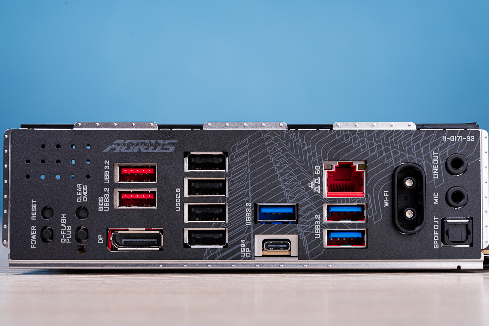 主板 I/O 除了支援前置擴充 USB-C 10Gbps 外,後 I/O 具備一體式檔板,以及 4 個 USB 2.0、5 個 USB 3.2 還有著高速的 USB4 Type-C(DP)與 1 個 DisplayPort 內顯輸出;網路方面則具備 5GbE 有線網路、Wi-Fi 7 320MHz 的完整連線規格。