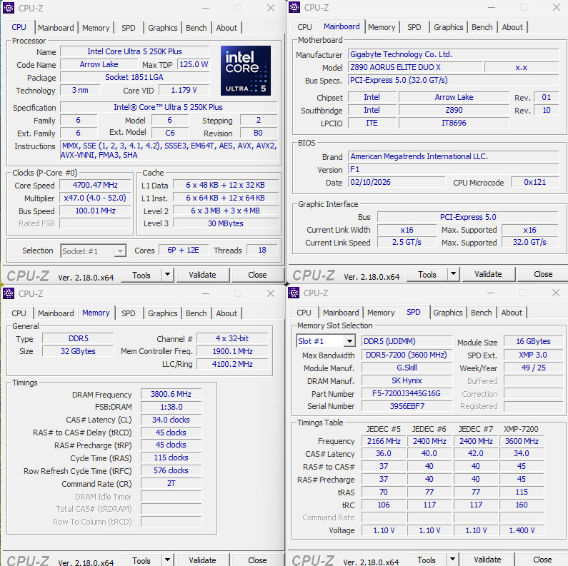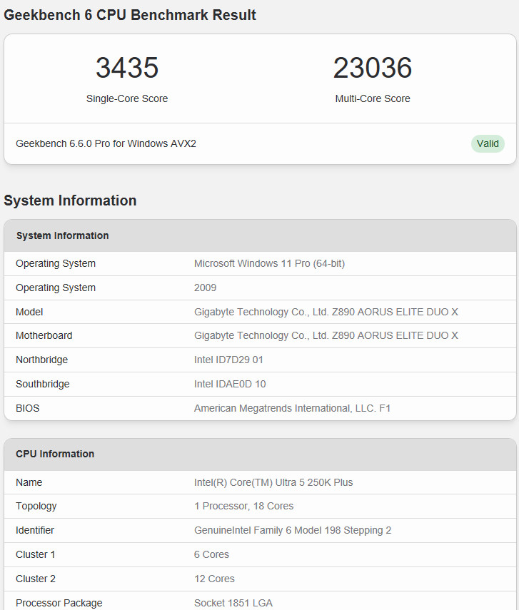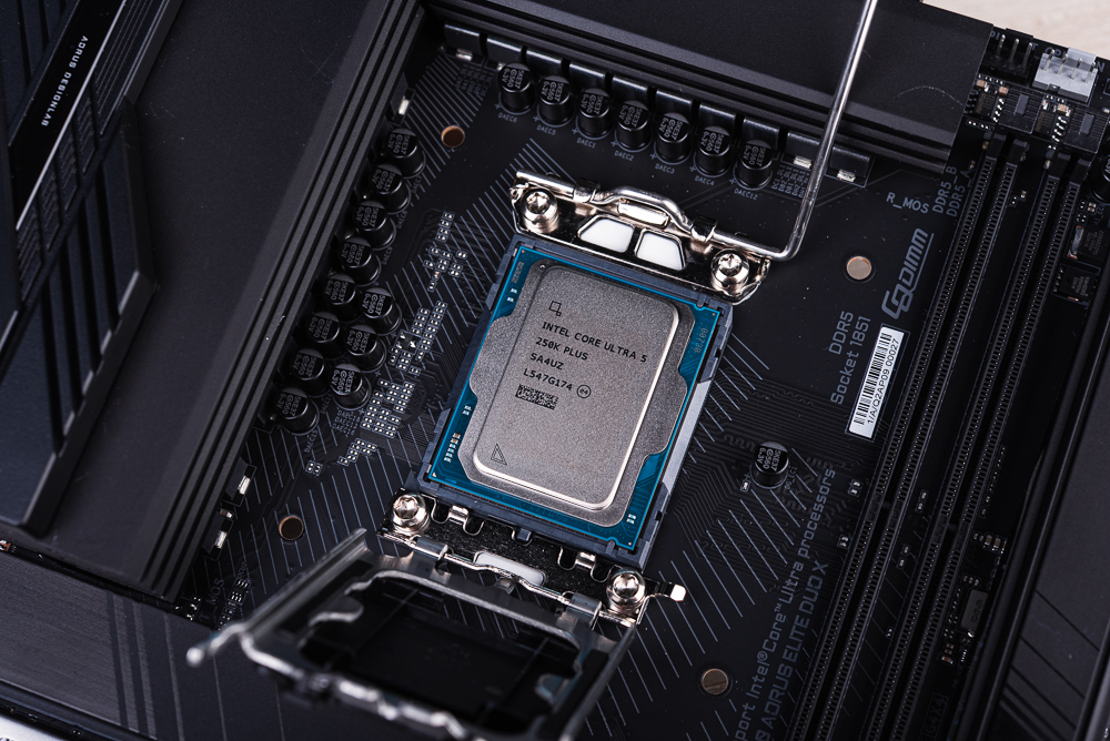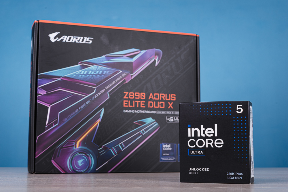 ↑ GIGABYTE Z890 AORUS ELITE DUO X 與 Intel Core Ultra 5 250K Plus 處理器。