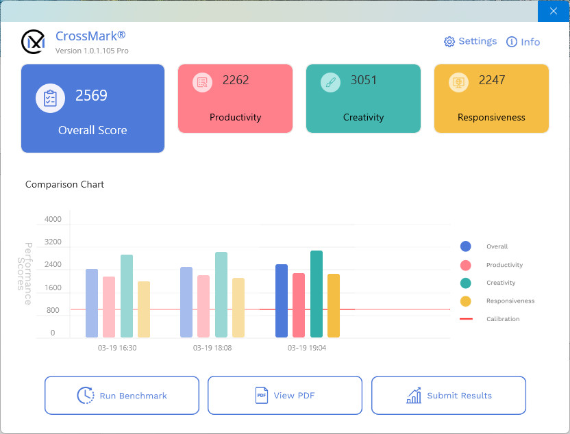 跨平台的電腦效能測試工具 CrossMark,則是由 BAPCo 所開發的免費測試工具,支援 Windows、iOS/iPadOS、macOS 與 Android 等平台,並針對電腦的生產力,如文字編輯、試算表、網頁瀏覽,以及創作類的相片編輯、整理與影片編輯等工作,再加上電腦反應速度進行測試。