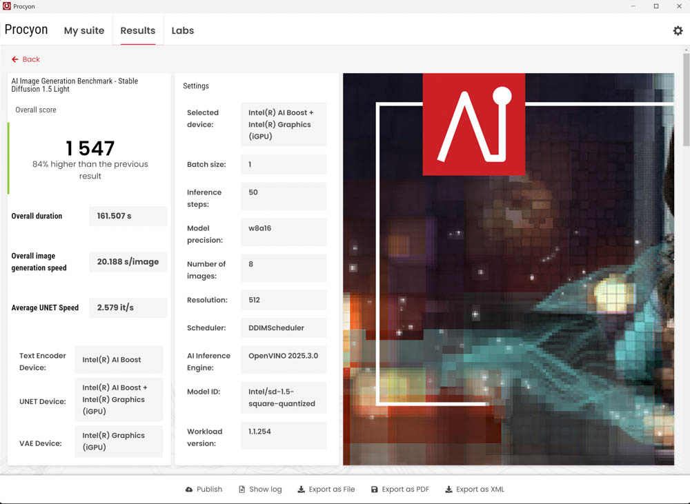 ↑ Procyon AI Image Generation Stable Diffusion 1.5 Light 成績結果。