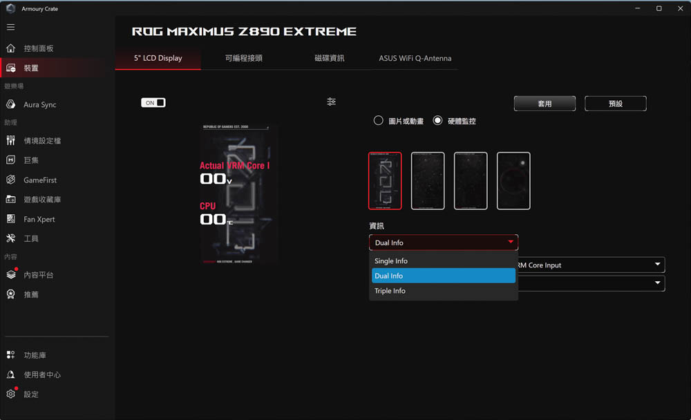 ↑ ROG MAXIMUS Z890 EXTREME 功能介面下,5” LCD Display 調整頁面。