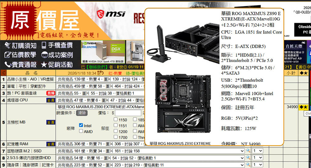 目前 ROG MAXIMUS Z890 EXTREME 主機板,官方通路售價為 NT$ 34,990,連價格也如同 EXTREME 般豪華,不愧是本家旗艦主板的極致典範!對於ROG 發燒友,或想組 Intel 頂配裝機玩家,無疑為極致選擇。