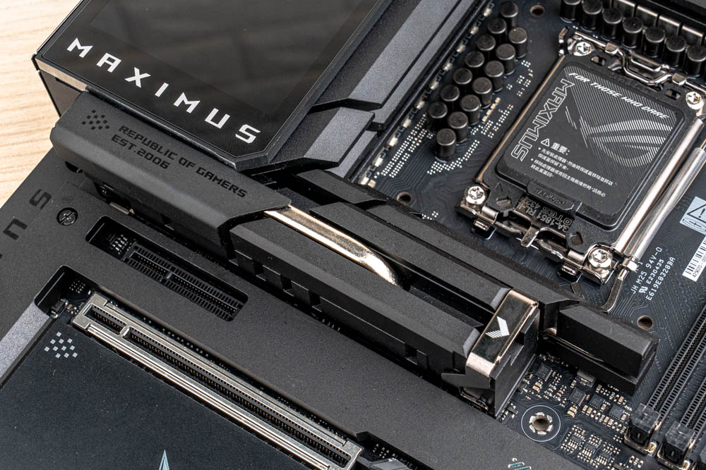 ↑ 帶有ROG風格的VRM鋁合金散熱器、敗家保護蓋與MAXIMUS I/O上蓋螢幕。