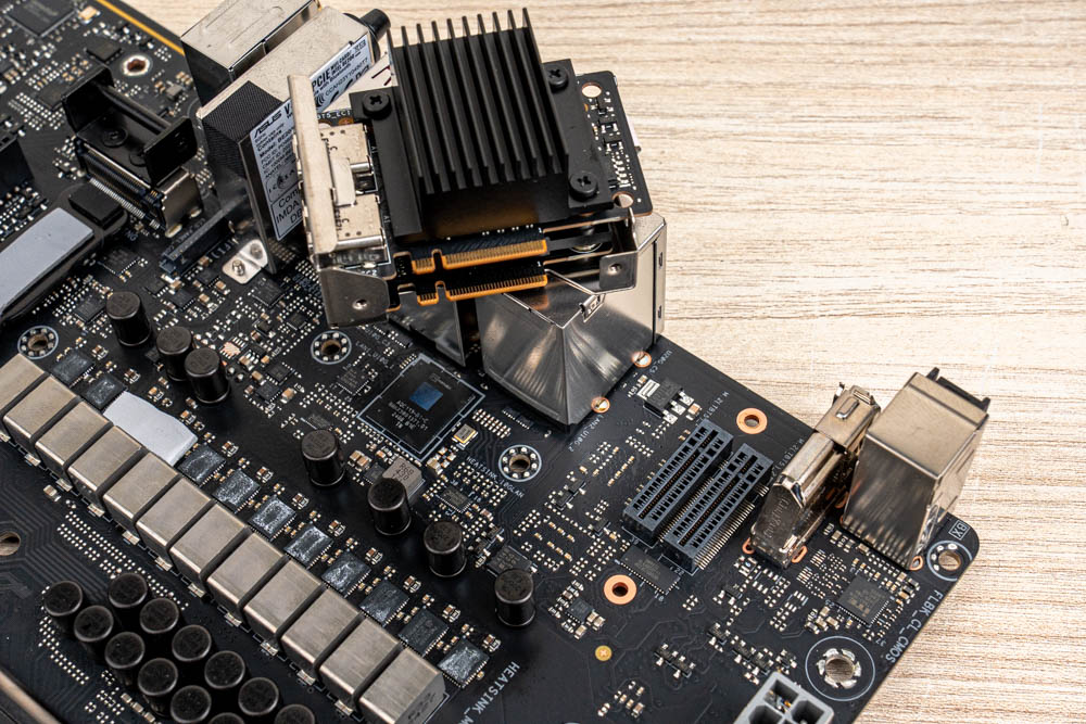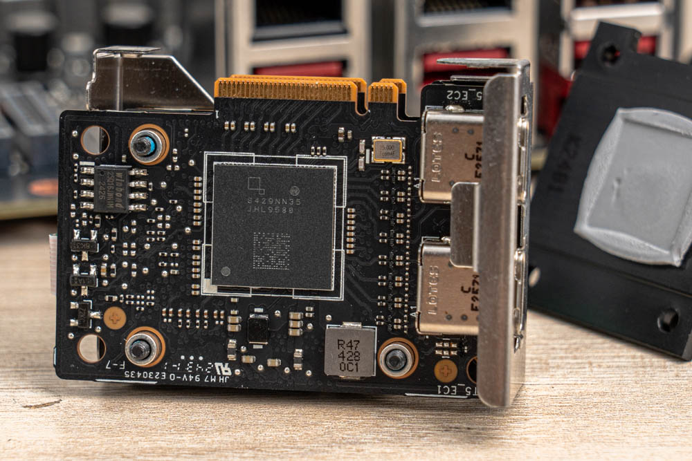 ↑ 拆解子卡模組,Thunderbolt 5 晶片為 Intel JHL9580,供後置 Thunderbolt 5 連接埠。