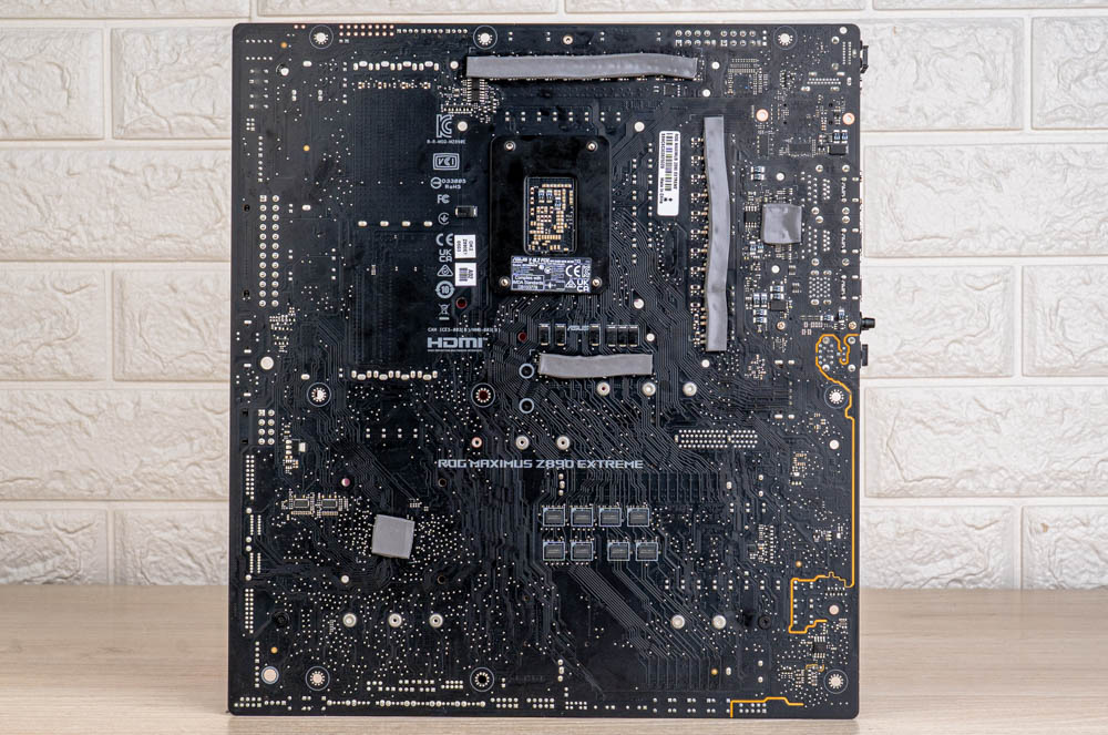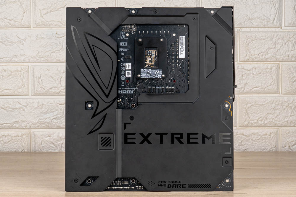 ↑ ROG MAXIMUS Z890 EXTREME背面,也佈滿線路點位與電子元件。