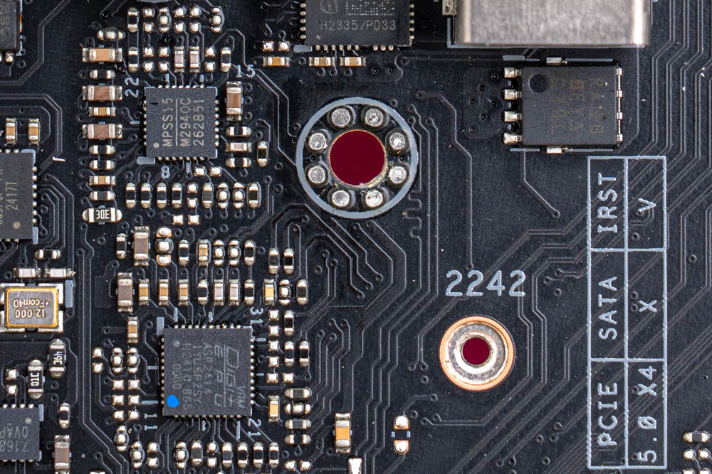 ↑ 以VRM DiGi+ EPS ASP2414 PWM控制器 (藍),搭配MPS MP2940C,作為 CPU 供電處理。