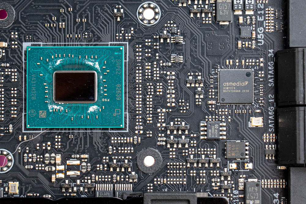 ↑ Z890 晶片組 (左);ASMedia ASM1074晶片 (右),提供前置 USB-A 5Gbps。