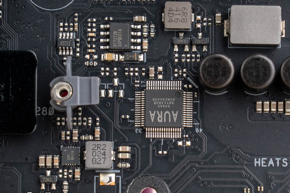 處理器方面,採用Teamed 24 相 110A VccCore + 1 相 90A VCCGT + 2 相 90A VCCSA + 2 相 80A VNNAON 的 Power Stages 供電設計,設有10K 黑色金屬電容、MicroFine鋁合金電感,並搭配VRM 鋁合金散熱器,採用熱導管串聯成 C 型散熱,為供電元件提供穩定散熱。