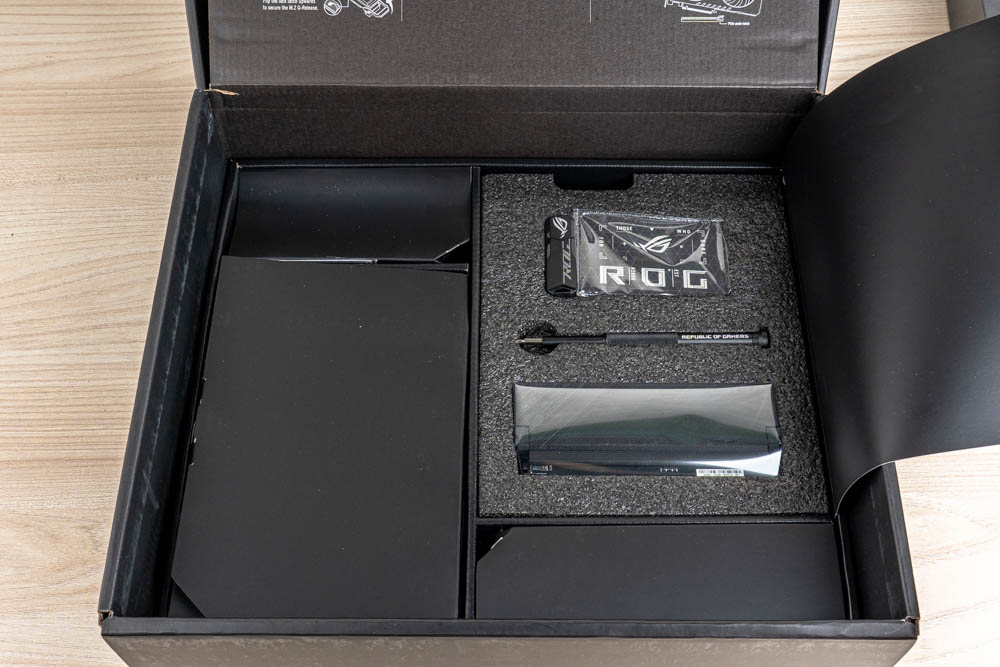 此外,具有可擴充性配件,提供 ROG Q-DIMM.2 擴充卡、WiFi-7 快拆天線,方便玩家依據功能需求來安裝擴充;而次要配件,則給有備用M.2快拆、緩衝與導熱墊,以及一體式的前面板接頭。