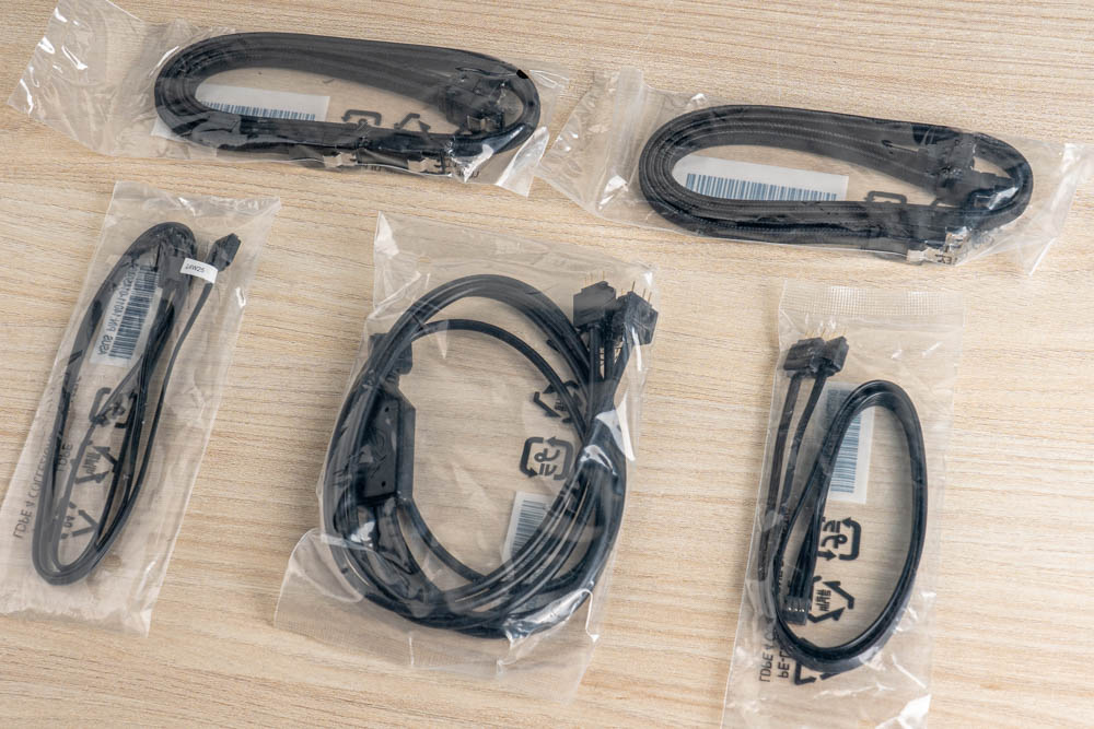 主機板配件,給好的還給滿,十分「EXTREME」極致風範,分有基本的使用手冊、兩條 SATA 數據線 ( 水平 / 垂直)、熱敏電阻線、DDR5風扇支架、開瓶器;以及分接線材,給有兩條1拖 4 風扇線、一條 1 拖 2 ARGB 線、一條 1 拖 3 ARGB線 (主板右側 ADD GEN2_12 6-Pin專用)。