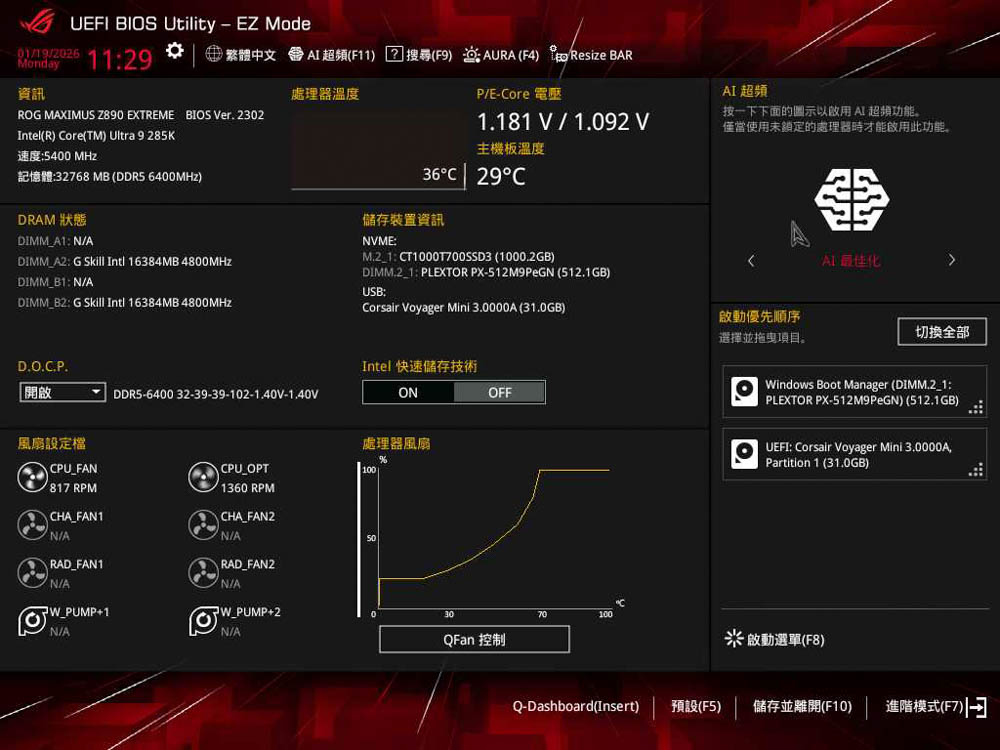 ROG MAXIMUS Z890 EXTREME BIOS功能 / DIY友善Q-DASHBOARD、Q-Fan、AI超頻