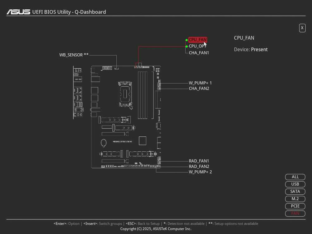 ↑ 點選右下角選項,即可篩選硬體類別;筆者選擇 FAN風扇並點擊 CPU_FAN 埠。