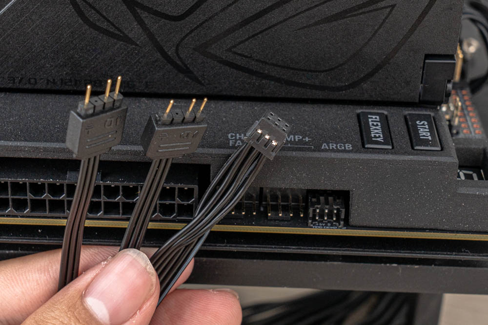 ↑ 水冷 ARGB 燈效連接,透過主板 ADD GEN2_12 接口、ARGB 分接線來連接。