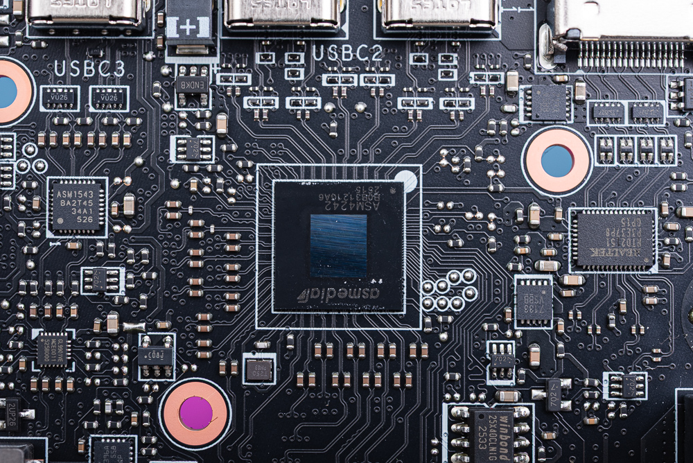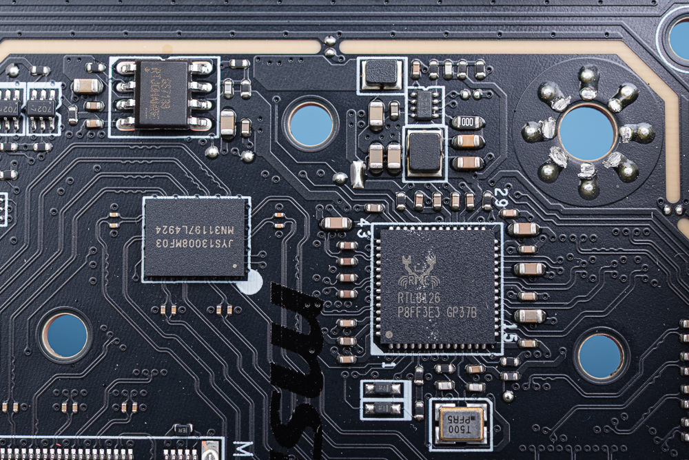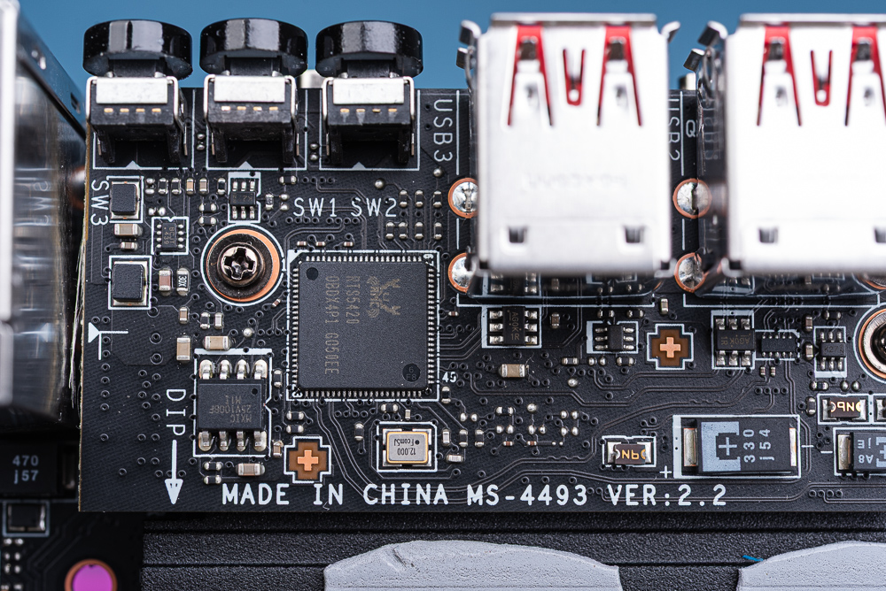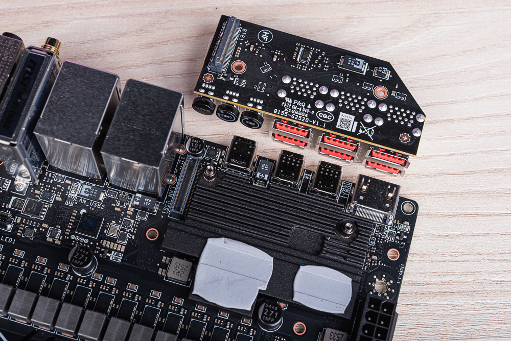 ↑ 後方 I/O 堆疊電路板使用 RTS5420 擴充 USB 3.2 Gen2。