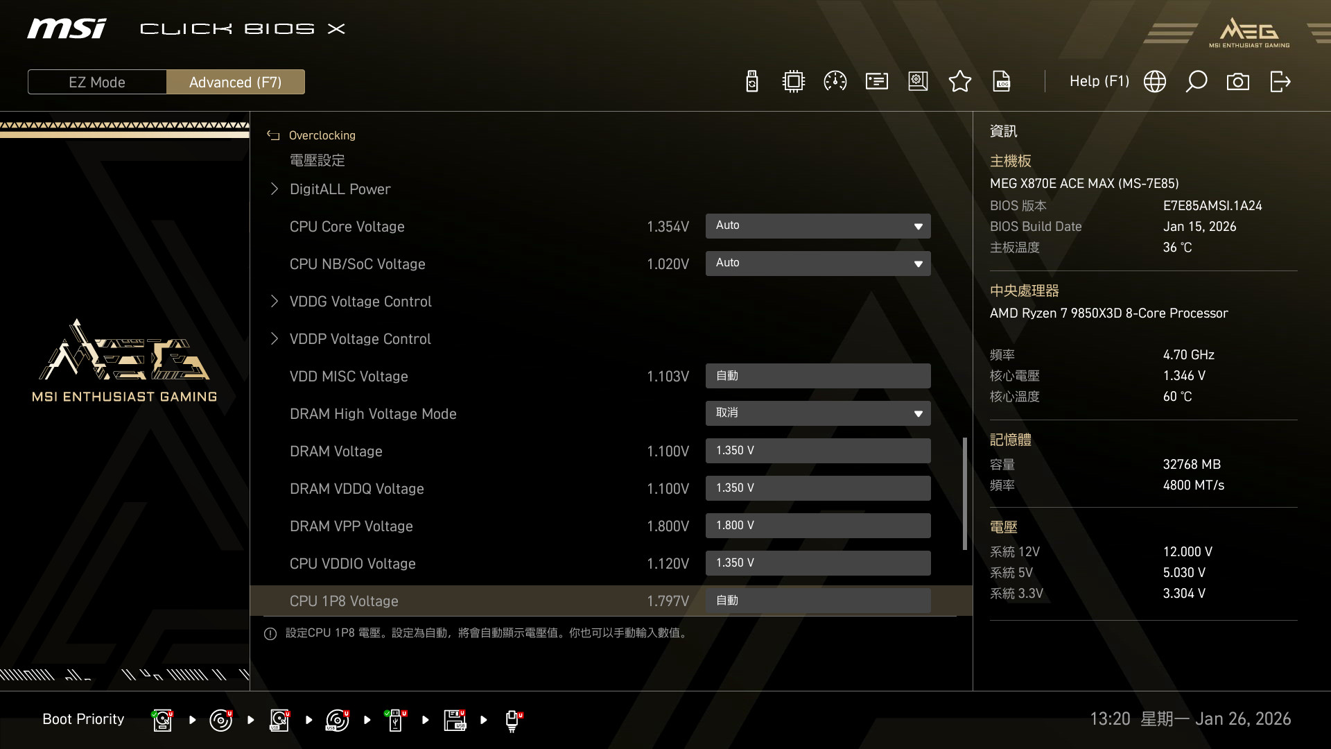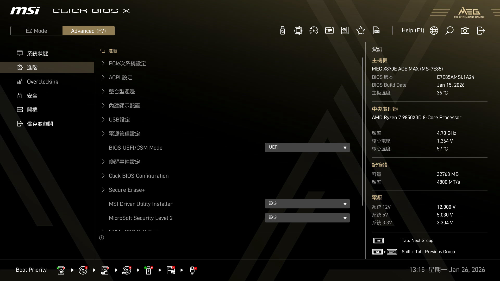 主機板:MSI MEG X870E ACE MAX