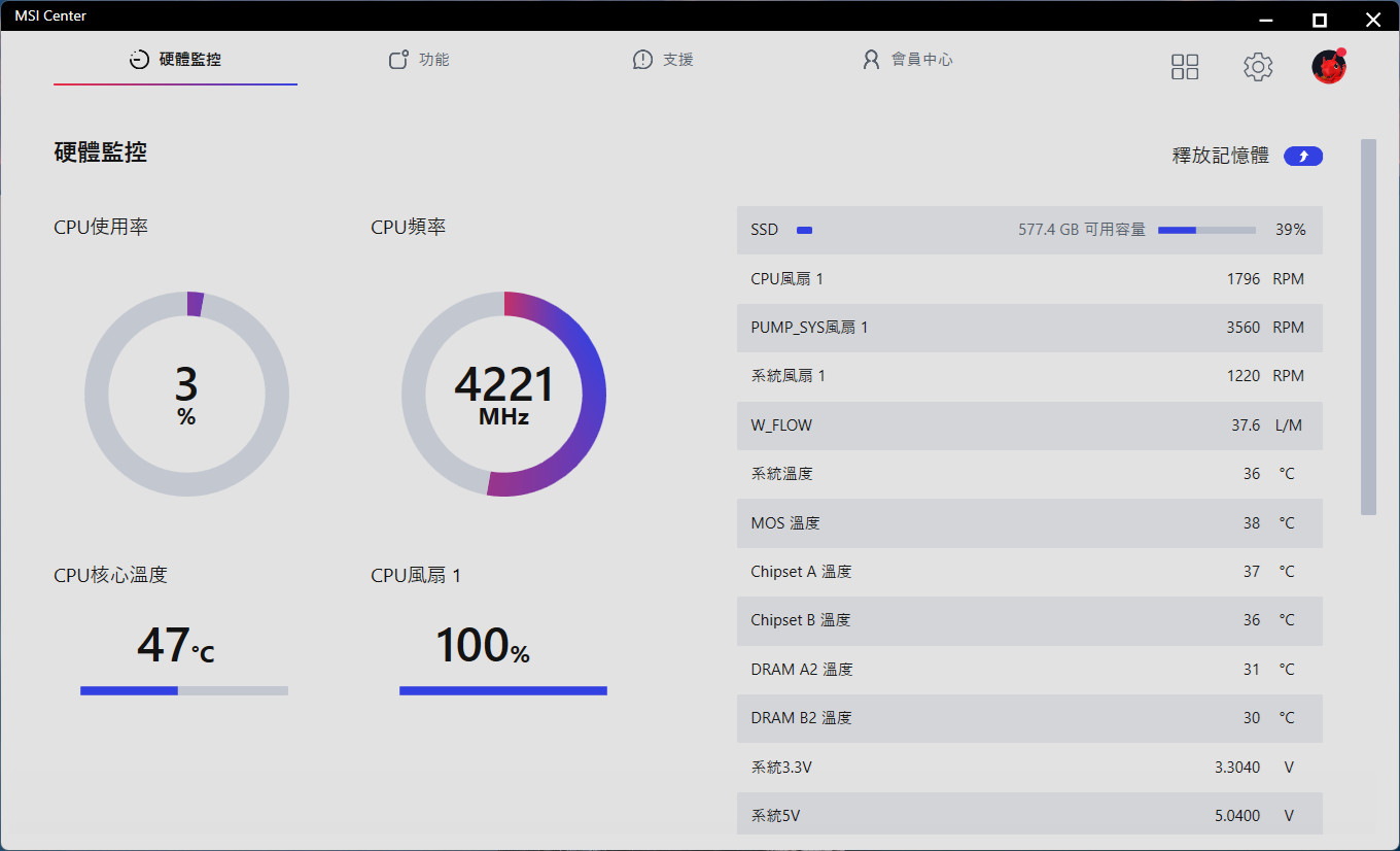 MSI Center 軟體:監控、AI、Mystic Light、Super Charger+