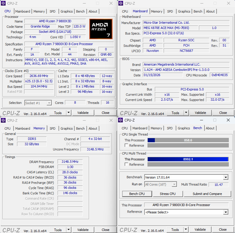 ↑ CPU-Z 9800X3D PRO BCLK Booster 2、DRAM 6000 High-Efficiency Tighter Latency Killer。