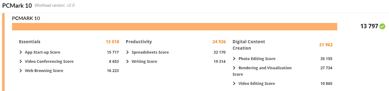 至於 PCMark 10 電腦整體效能測試,超頻前後電腦整體性能約提升 1.9%;但在 Essentials 基本電腦工作,如 App 啟動速度、視訊會議、網頁瀏覽性能進行評分,以及 Productivity 生產力測試,則以試算表與文書工作為測試項目,這兩者分別有著最終 3% 的效能提升。