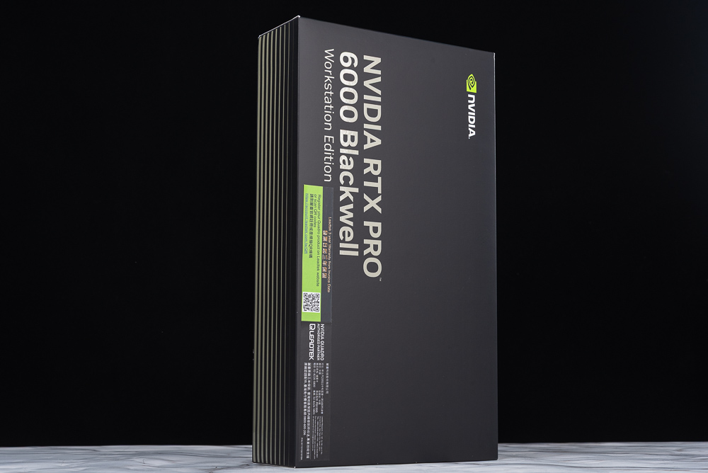↑ NVIDIA RTX PRO™ 6000 Blackwell 工作站 GPU 外盒。
