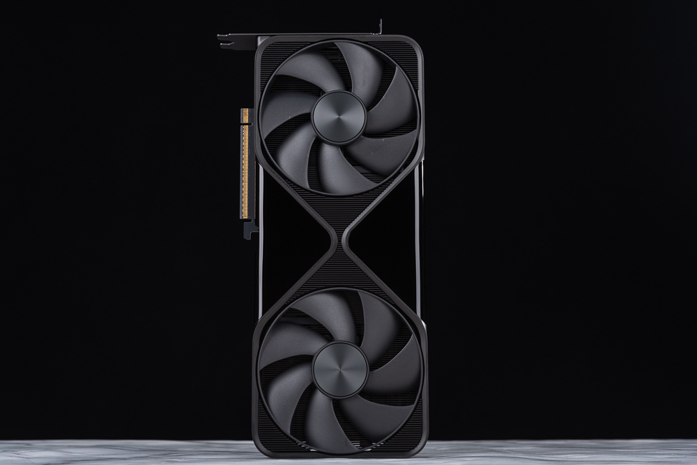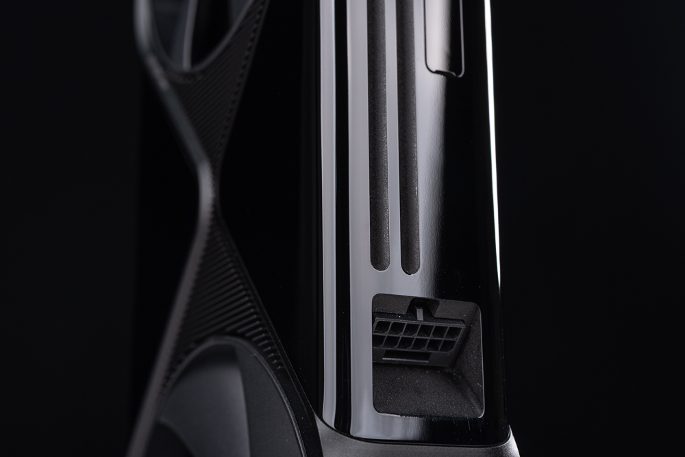 ↑ RTX PRO™ 6000 Blackwell 工作站 GPU 有著創始版的散熱器,但改為高質感的黑鏡面外殼,以及金屬邊框、滿板散熱鰭片。