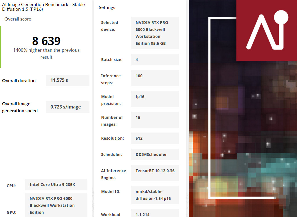 ↑ UL Procyon AI Image Generation,Stable Diffusion (FP16)。