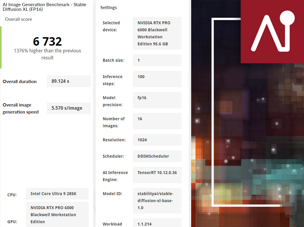 ↑ UL Procyon AI Image Generation,Stable Diffusion XL (FP16)。