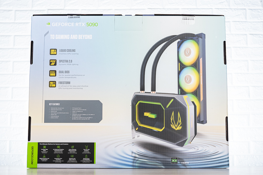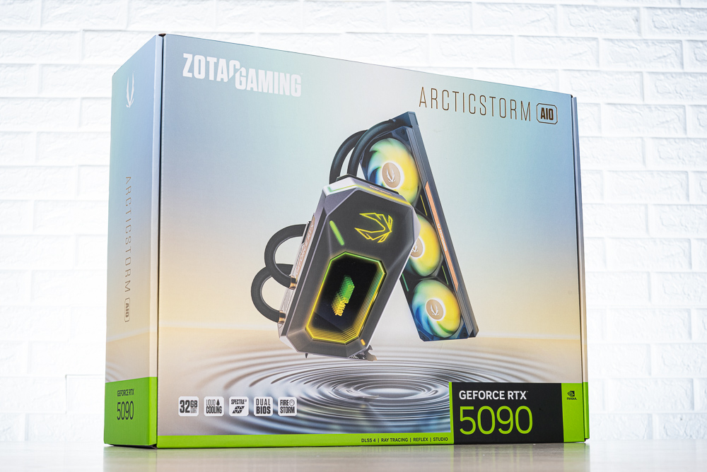 ↑ ZOTAC GAMING GeForce RTX 5090 ArcticStorm AIO 顯卡外包裝,因為包含 360mm 水冷排因此包裝相當大。