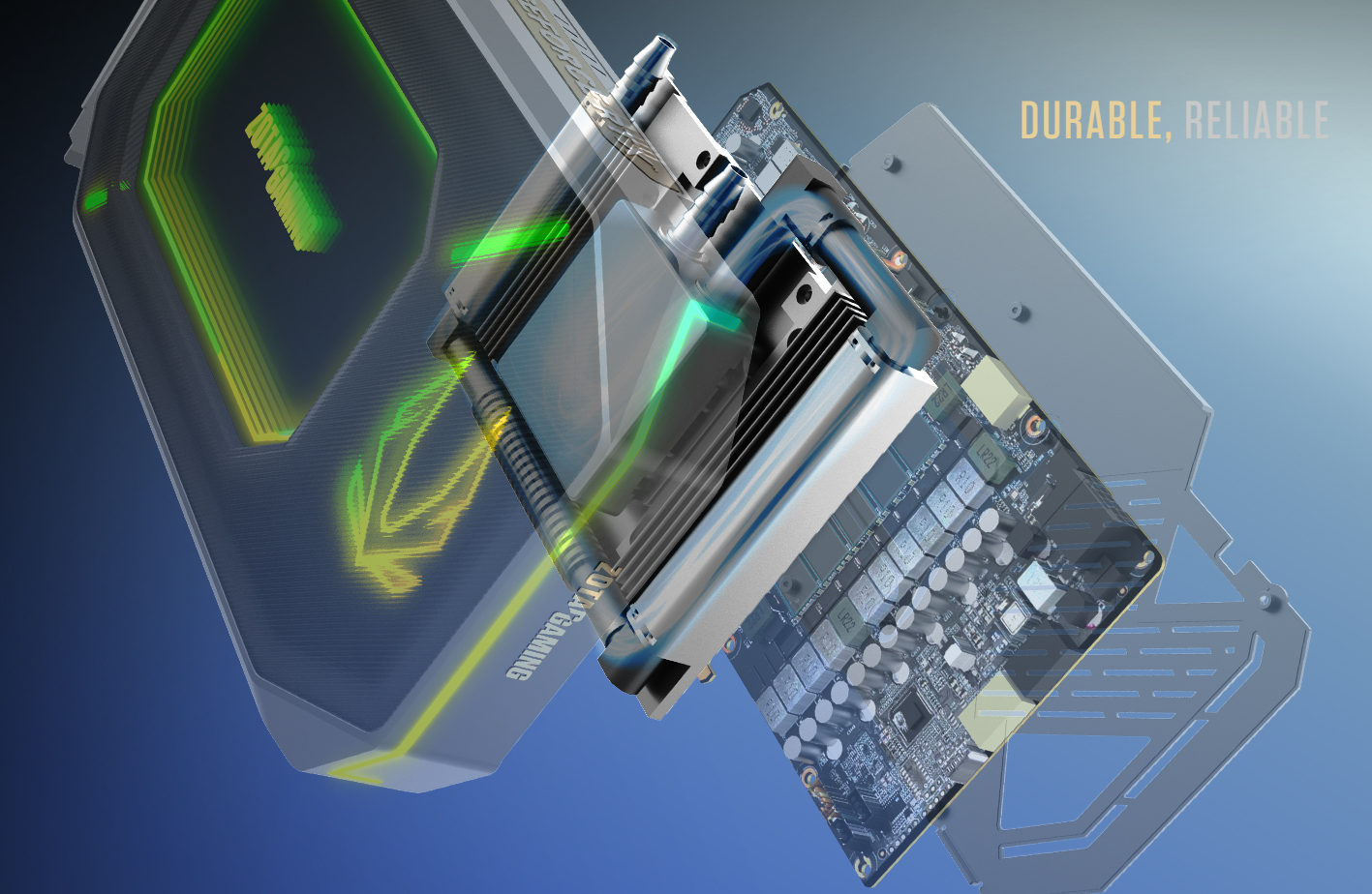 ↑ 顯卡上方的水冷管線與造型。