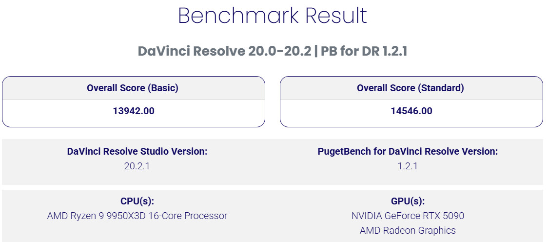 ↑ PugetBench for DaVinci Resolve。
